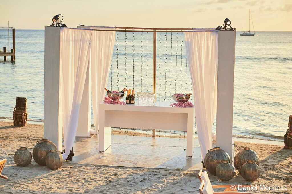 En bodas al aire libre, me encanta colocarlo frente al atardecer, para que se convierta en el lugar favorito a esa hora mágica.