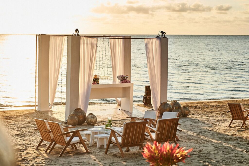 En bodas más estructuradas, puede funcionar frente a la pista de baile para evitar que los invitados pierdan el ambiente. Porque lujo también es comodidad.