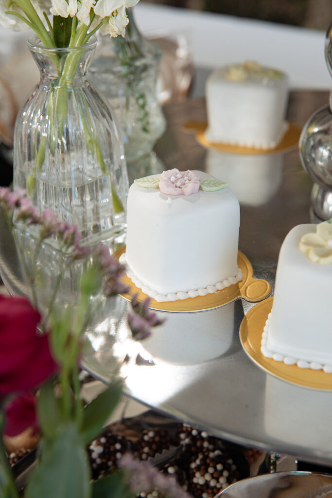 Los petit fours no compiten con el pastel; lo acompañan, lo presentan, lo traducen en pequeños bocados. Son el puente entre la estética del postre principal y la experiencia individual de cada invitado.